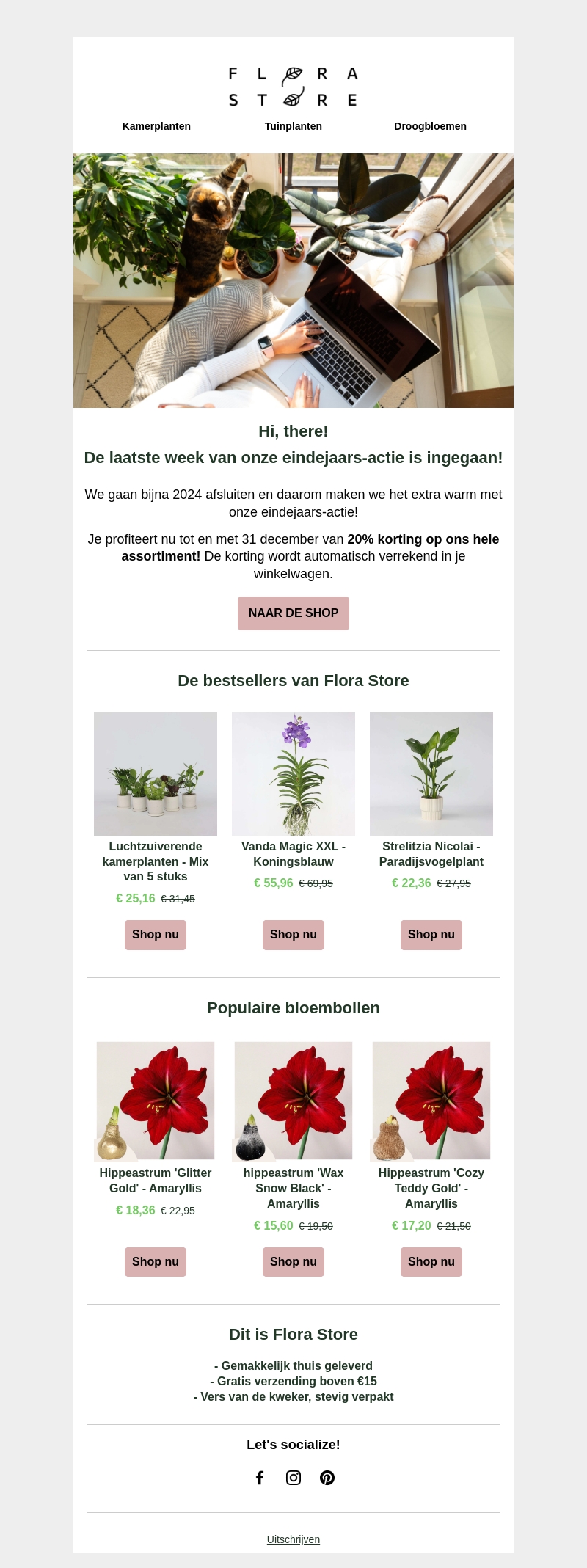 πΏ Eindejaars-actie bij FloraStore: 20% korting op alles!