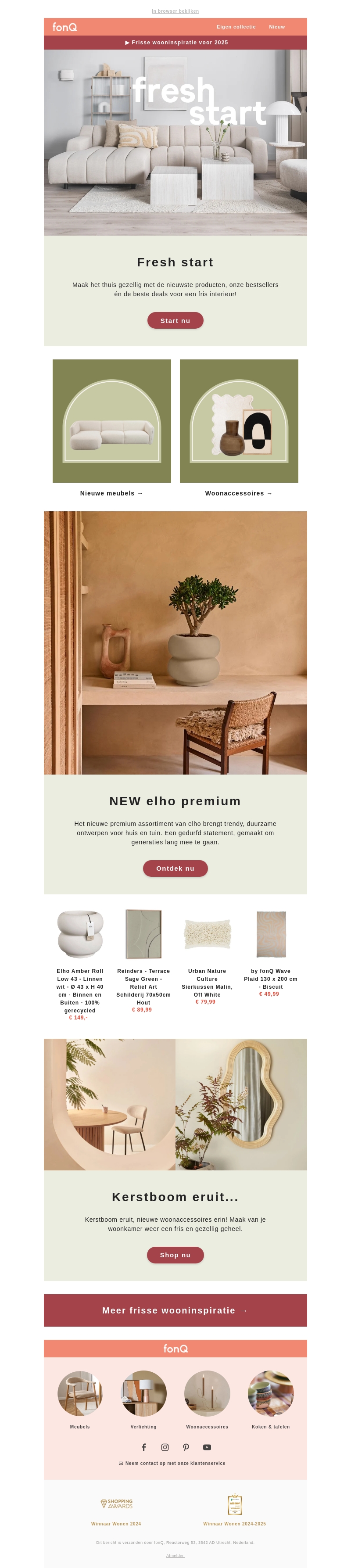 Vernieuw je interieur met de nieuwste producten van fonQ. Ontdek de premium Elho-collectie voor een duurzaam en stijlvol huis. Profiteer van de beste aanbiedingen en zorg voor een frisse start in 2025.