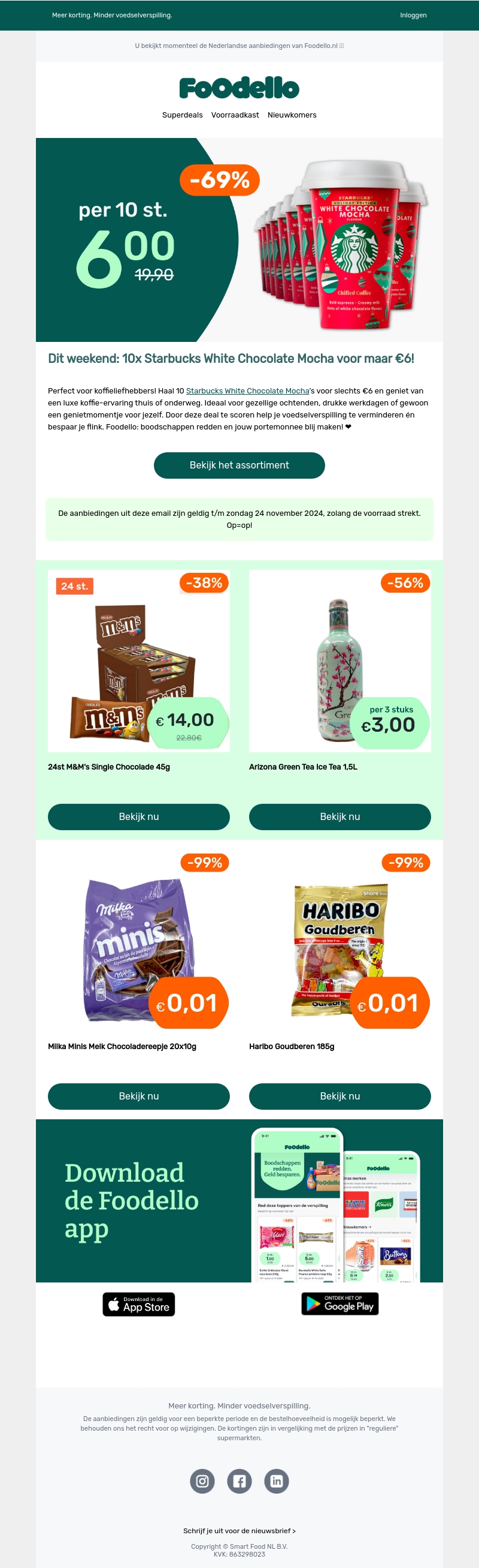 Haal 10x Starbucks White Chocolate Mocha voor slechts β¬6! Deze deal biedt een luxe koffie-ervaring voor thuis of onderweg. Ideaal voor gezellige ochtenden, drukke werkdagen of een genietmomentje. Profiteer nu van deze korting en verminder voedselverspilling. Actie geldig tot 24 november 2024, op=op!