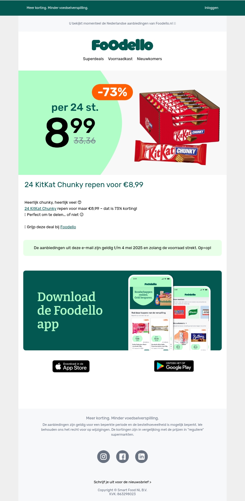 🍫 24x KitKat Chunky voor €8,99