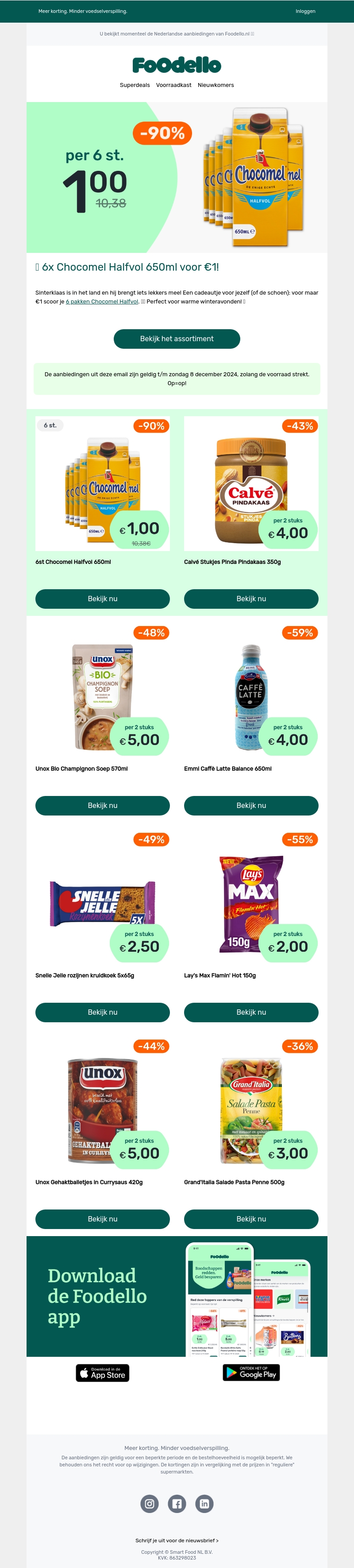 Profiteer van een ongelooflijk Sinterklaasaanbod: 6 pakken Chocomel voor slechts €1! Ideaal voor de wintermaanden en een perfect cadeau of traktatie. Bekijk nu het assortiment en bespaar meer met deze exclusieve aanbieding. Actie geldig t/m 8 december 2024.
