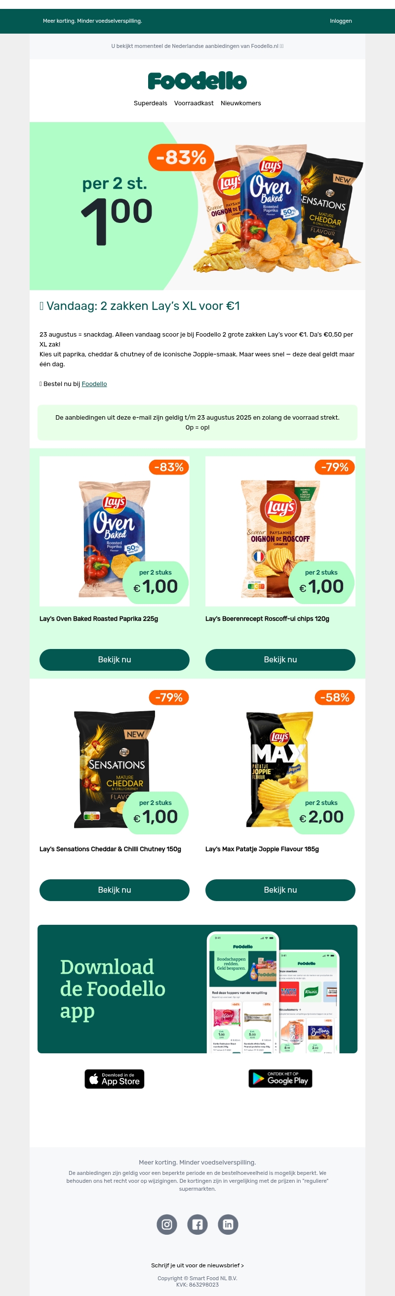 Snack slim: 2 XL Lay’s zakken voor €1