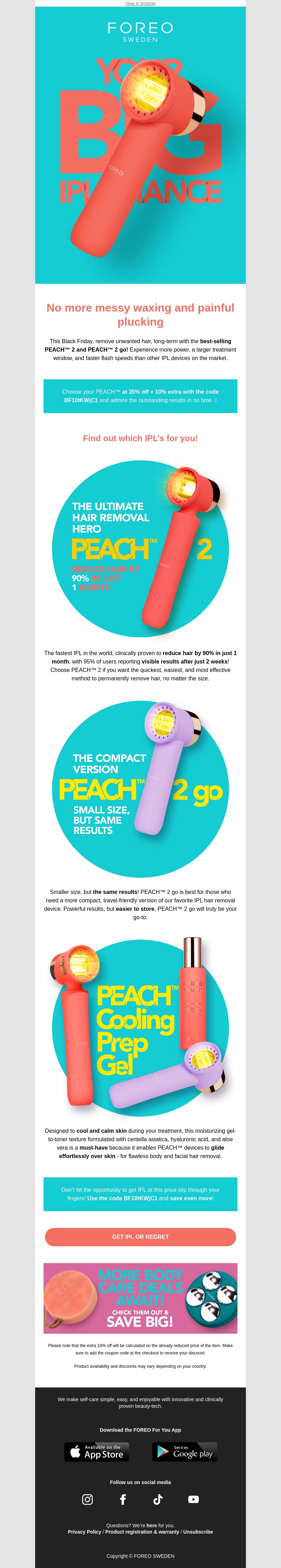 Hair removal heroes at 35% off + an extra 10% just for you! 🍑