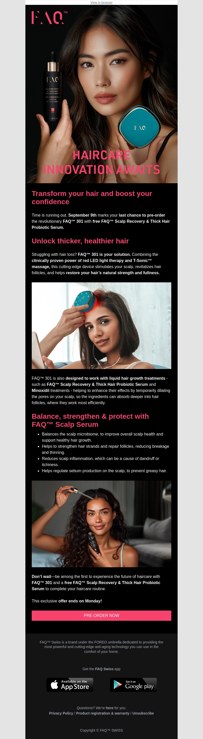 Last chance to pre-order FAQ™ 301 with a free scalp serum
