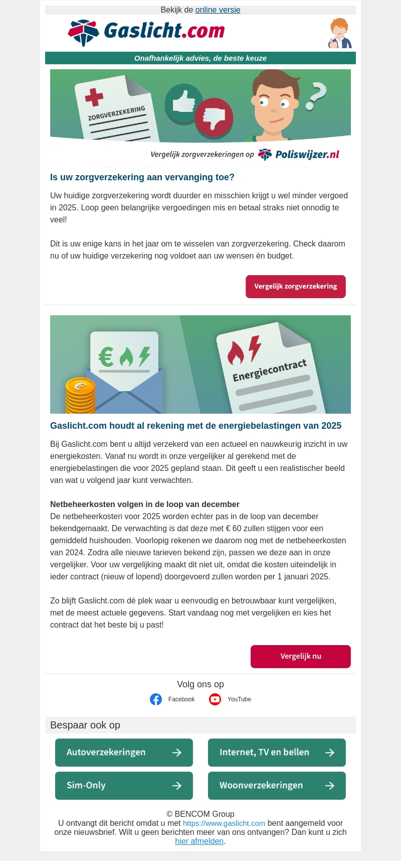 Gaslicht.com informeert je over toekomstige energiebelastingen in 2025 en adviseert over het vergelijken van zorgverzekeringen. Bereid je voor op hogere netbeheerkosten in december. Vergelijk nu en kies een passend contract.