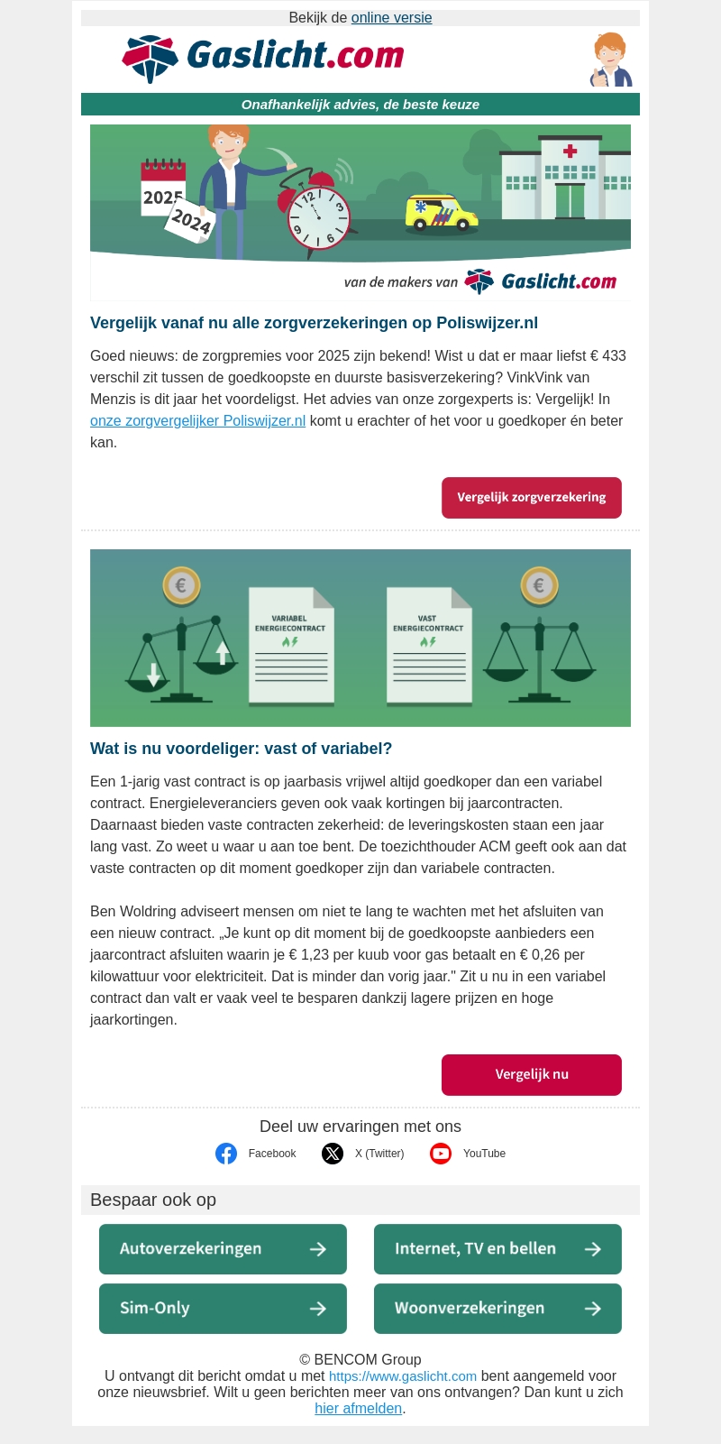 De zorgpremies voor 2025 zijn bekend. Ontdek het verschil tussen vaste en variabele energiecontracten. Vast blijkt vaak goedkoper te zijn. Bespaar op verzekeringen met de beste keuzes voor 2025. Lees meer voor tips en kortingen.