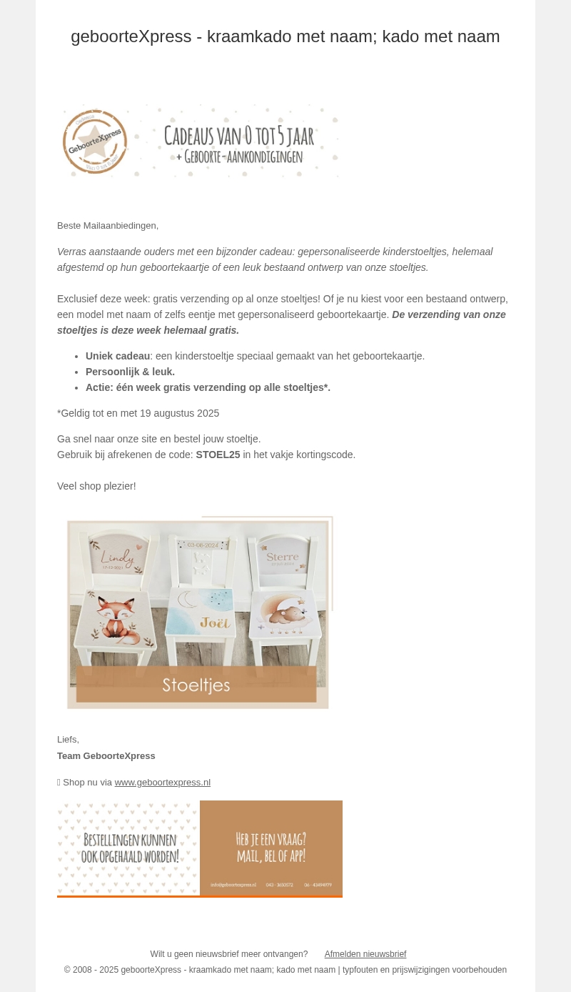 Eén week lang: gratis verzending op stoeltjes! 🎁