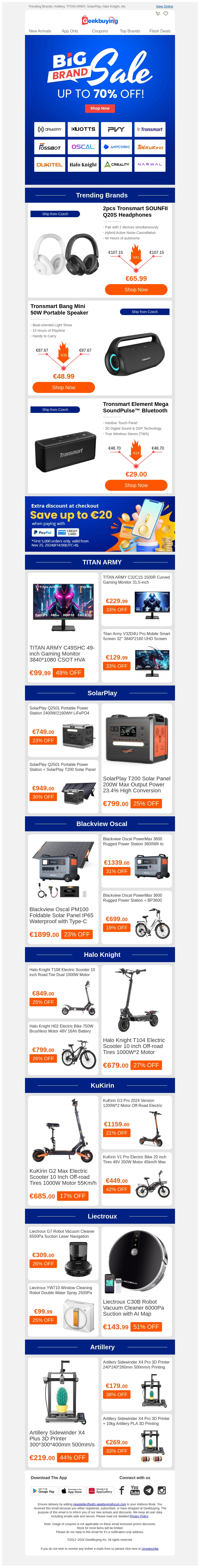 Beleef ongekende kortingen tot wel 70% op topmerken tijdens onze Big Brand Sale! Van elektronica tot lifestyle, vind alles wat je nodig hebt voor minder. Profiteer nu van deze uitzonderlijke Black Friday deals en bespaar groots. Je favoriete merken zijn slechts een klik verwijderd! Mis deze kans op enorme besparingen niet!