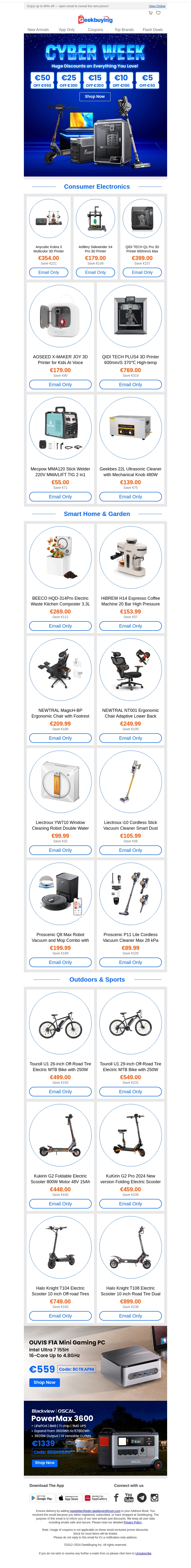 Beleef de beste Cyber Week deals met kortingen op een breed scala aan producten. Van consumentenelektronica tot slimme huis- en tuinspullen, wij hebben iets voor iedereen. Profiteer van kortingen tot wel €50 op je favoriete merken. Mis deze kans niet om te besparen op topkwaliteit producten. De aanbiedingen gelden slechts 48 uur!