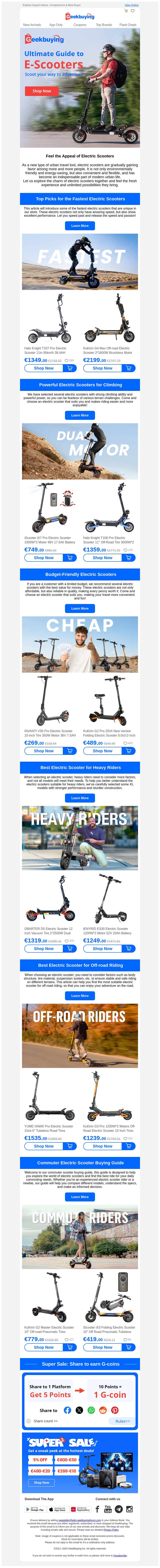 Ontdek de ultieme gids voor e-scooters met Geekbuying. Leer de voordelen van elektrische scooters kennen, bekijk onze topkeuzes, en vind de beste deals voor elk budget. Of je nu een beginner bent of een ervaren rijder, wij hebben de perfecte scooter voor jou.
