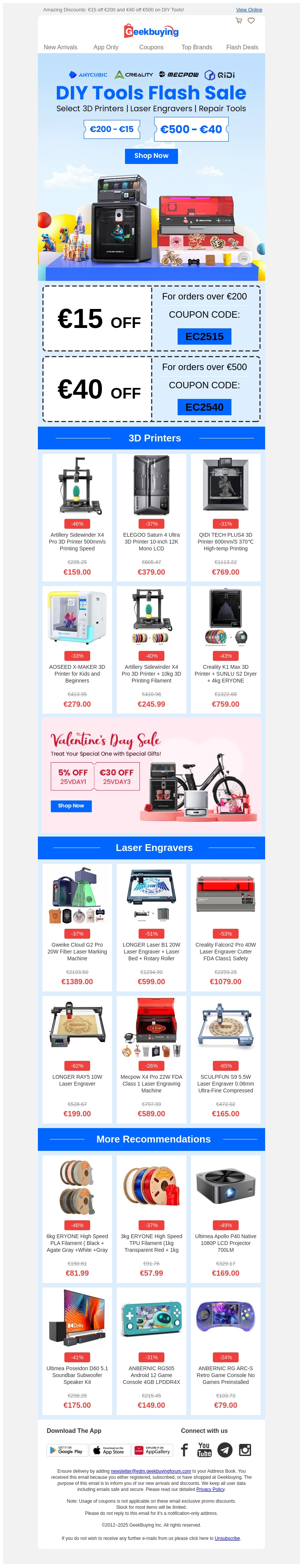 Duik in de wereld van doe-het-zelf met onze exclusieve aanbieding op DIY-tools. Van 3D-printers tot lasergraveerders, we hebben alles wat je nodig hebt om je creativiteit de vrije loop te laten. Profiteer nu van kortingen tot β¬40 op geselecteerde producten. Deze flash sale geldt voor een beperkte tijd, dus grijp je kans! Ontdek de nieuwste tools die je projecten naar een hoger niveau tillen. Mis deze kans niet om topkwaliteit tegen scherpe prijzen te verkrijgen.