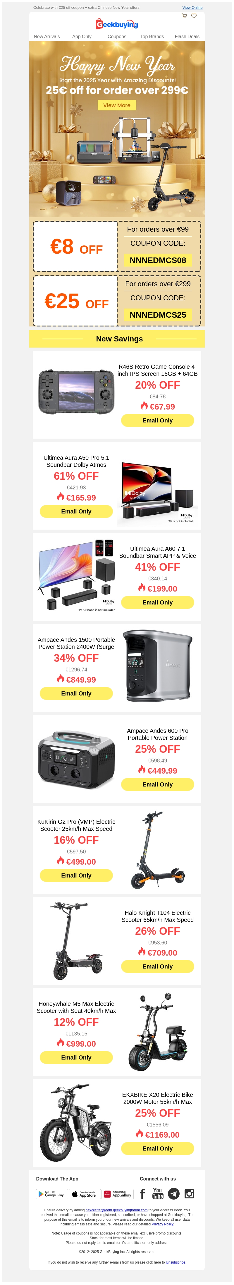 Vier het nieuwe jaar met unieke kortingen op topmerken. Profiteer van extra kortingen bij bestellingen boven β¬99 en β¬299 met de exclusieve couponcodes. Ontdek geweldige deals op gadgets, geluidssystemen, scootmobielen en meer. Zorg dat je deze kans niet mist en bespaar vandaag nog!