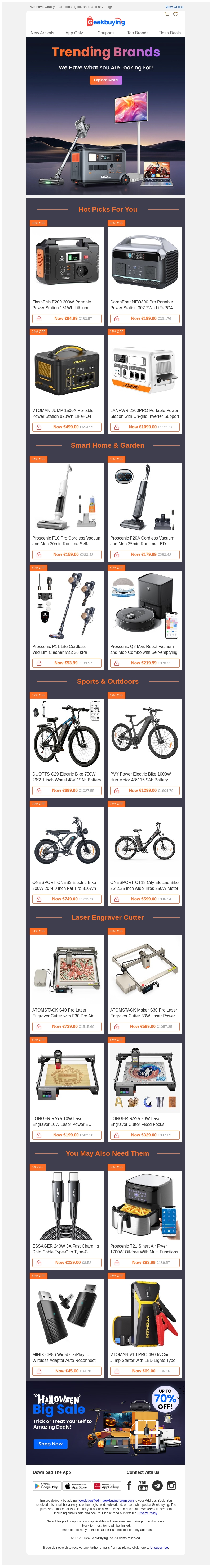 Mis deze kans niet om de nieuwste aanbiedingen te ontdekken van trending merken. Van elektronica tot sportartikelen en huishoudelijke apparaten, er is voor ieder wat wils. Profiteer bovendien van korting tot wel 70% tijdens onze speciale Halloween-uitverkoop. Bekijk de keuzes van experts voor de beste producten van topmerken. Koop snel in voordat de voorraad op is!