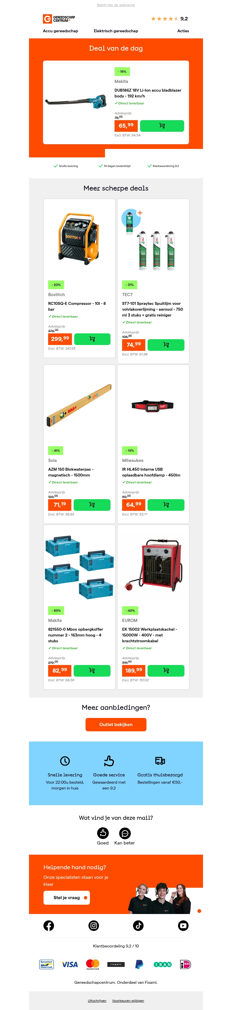 Deal van de dag: - 16% op Makita DUB186Z 18V Li-Ion accu bladblazer body - 192 km/h