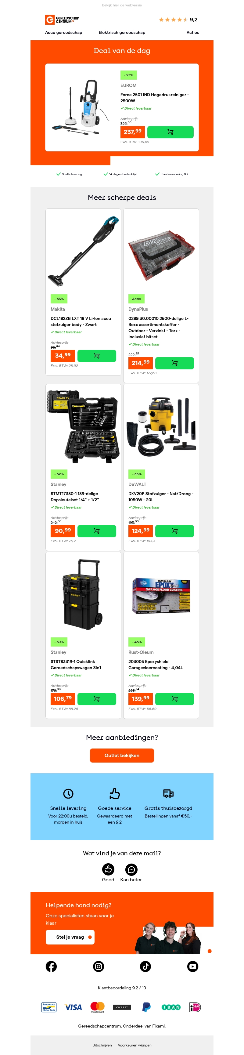 Profiteer van een geweldige deal met 27% korting op de EUROM Force 2501 IND Hogedrukreiniger, ideaal voor al uw schoonmaakklussen. De hogedrukreiniger levert krachtige prestaties met 2500W vermogen. Snelle levering en uitstekende service gegarandeerd. Bekijk ook andere scherpe deals op onze website.
