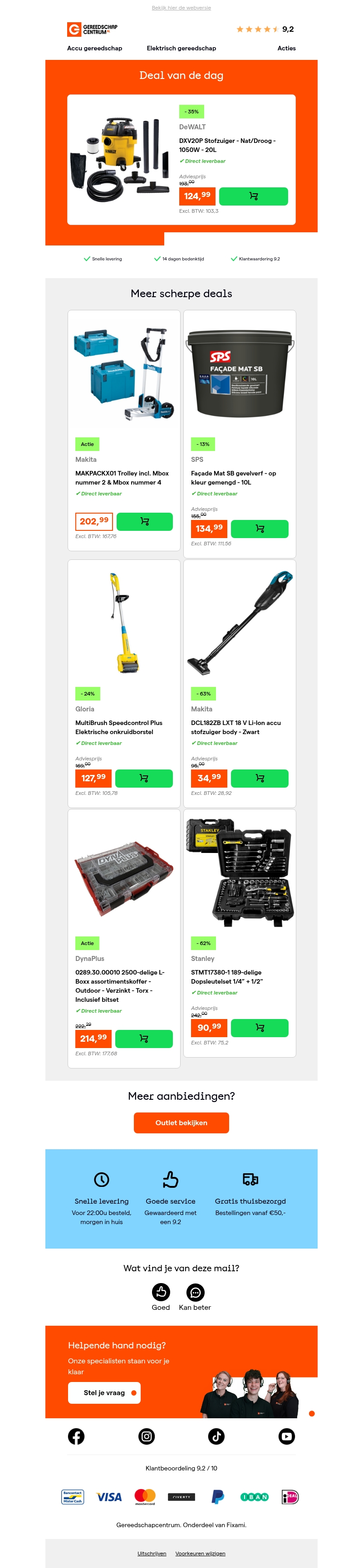 Ontdek de deal van de dag met 35% korting op de DeWALT DXV20P Stofzuiger. Met een vermogen van 1050W en een capaciteit van 20L, is deze nat/droog stofzuiger perfect voor elke klus. Profiteer van snelle levering en uitstekende service met een klantbeoordeling van 9.2. Mis deze kans niet om uw schoonmaakroutine te revolutioneren!