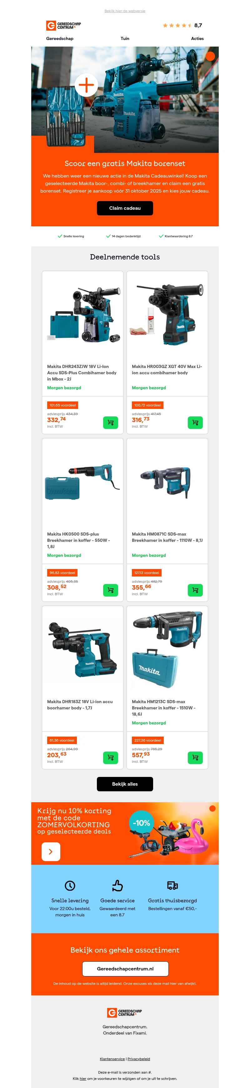 Gratis borenset in de Makita Cadeauwinkel