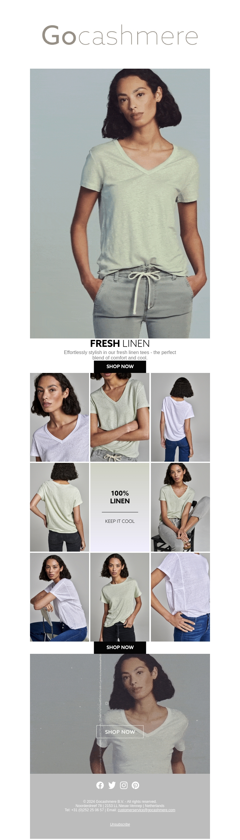 Maak kennis met de nieuwe collectie linnen t-shirts van Gocashmere. Ze zijn stijlvol, comfortabel en perfect voor elke gelegenheid. Of je nu op zoek bent naar iets casuals of chics, deze linnen t-shirts hebben het allemaal.