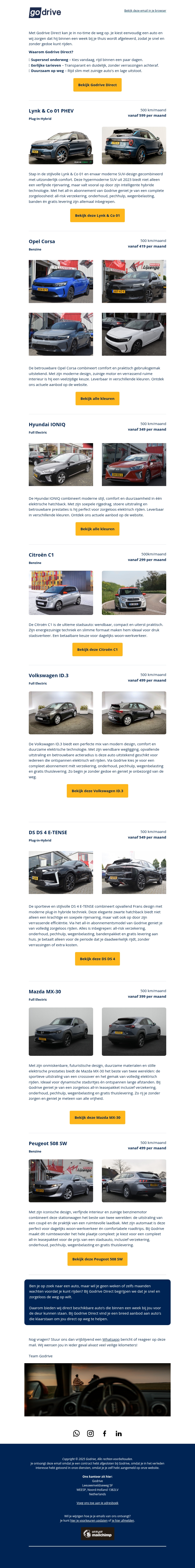 Mail, Korting op alle elektrische auto’s bij GoDrive