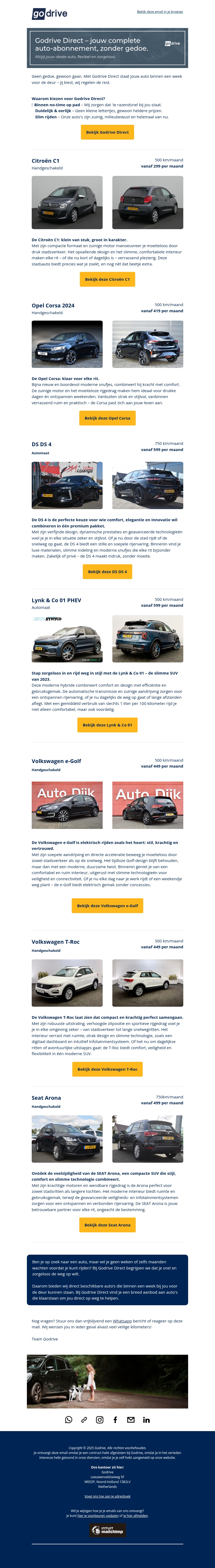 Mail, Korting op alle elektrische auto’s bij GoDrive