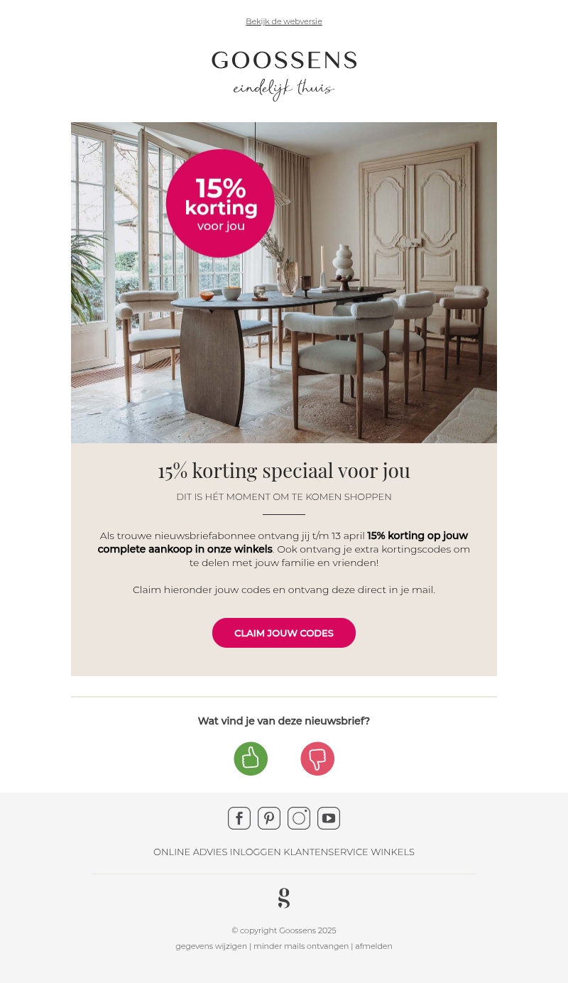 15% korting op jouw complete aankoop in de winkel