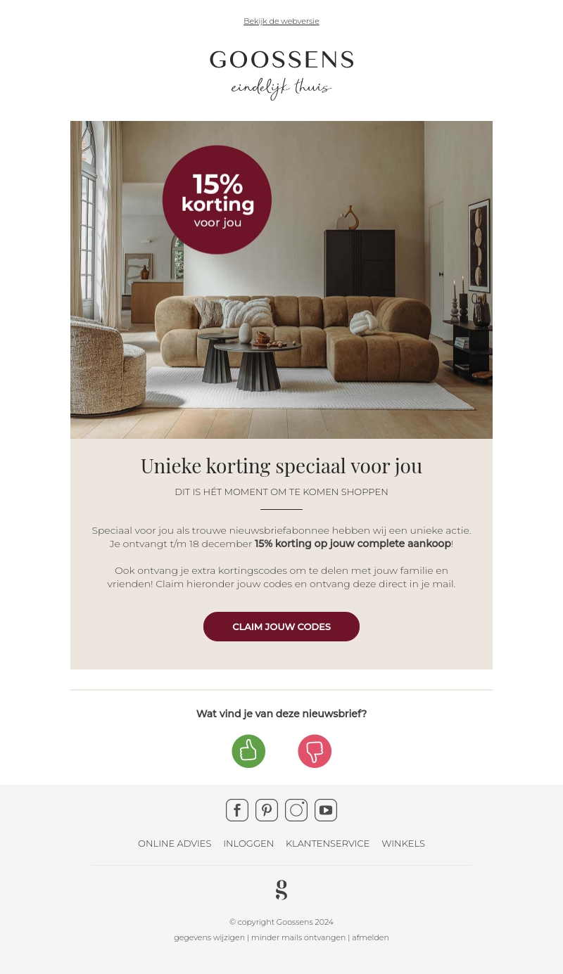 Speciaal voor onze trouwe abonnees hebben we een unieke actie. Ontvang tot en met 18 december 15% korting op je volledige aankoop. Profiteer nu van deze exclusieve aanbieding en claim je kortingscodes. Deel de codes met vrienden en familie voor nog meer voordeel. Mis deze kans niet om groots te besparen!
