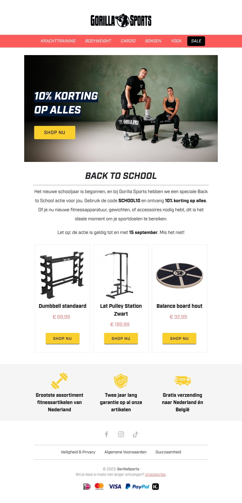 Het nieuwe schooljaar is begonnen en Gorilla Sports biedt een speciale Back to School actie met 10% korting op alles. Gebruik de code SCHOOL10 om de korting te ontvangen. Deze actie is geldig tot en met 15 september.
