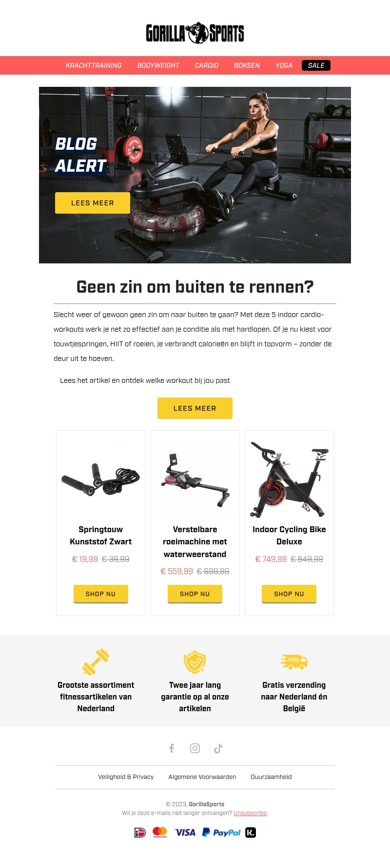 Slecht weer en geen zin om buiten te rennen? Deze nieuwsbrief introduceert vijf indoor cardio-workouts die net zo effectief zijn als hardlopen. Verbrand calorieën en blijf fit met touwtjespringen, HIIT of roeien, allemaal zonder je huis te verlaten. Lees verder om te ontdekken welke workout het beste bij jou past en bekijk onze aanbevolen producten.