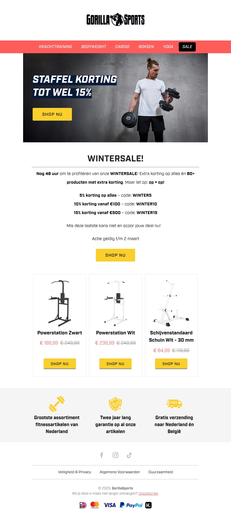 Profiteer nu van de GorillaSports Wintersale met kortingen tot wel 15% op een breed scala aan fitnessartikelen. Let op, de actie is alleen geldig tot en met 2 maart. Mis deze laatste kans niet op geweldige deals op krachttraining, bodyweight artikelen en meer.