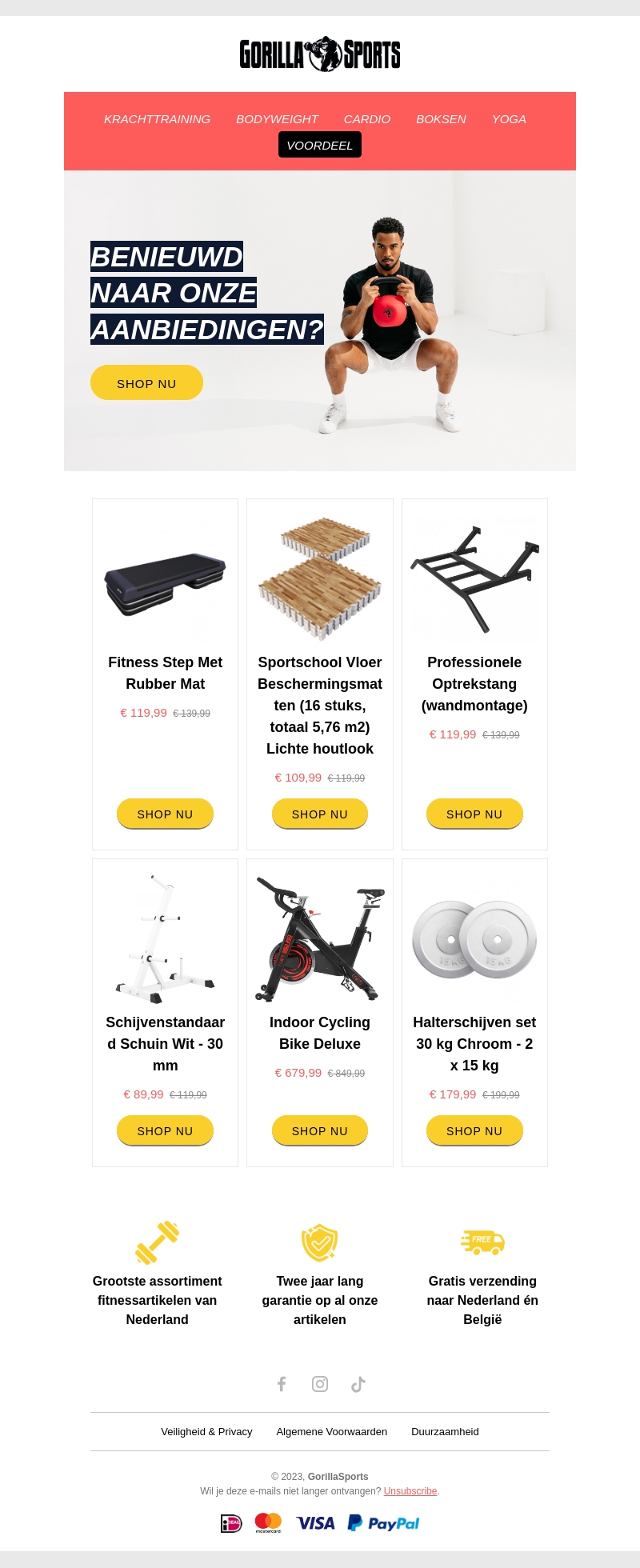 Start het nieuwe jaar met de beste fitnessdeals van Gorilla Sports. Profiteer van kortingen op fitnessartikelen zoals een fitness step met rubber mat, beschermingmatten voor de vloer, en meer. Mis deze kans niet om uw trainingsroutine te verbeteren. Winkel nu en ontdek waarom Gorilla Sports het grootste assortiment fitnessartikelen in Nederland heeft.