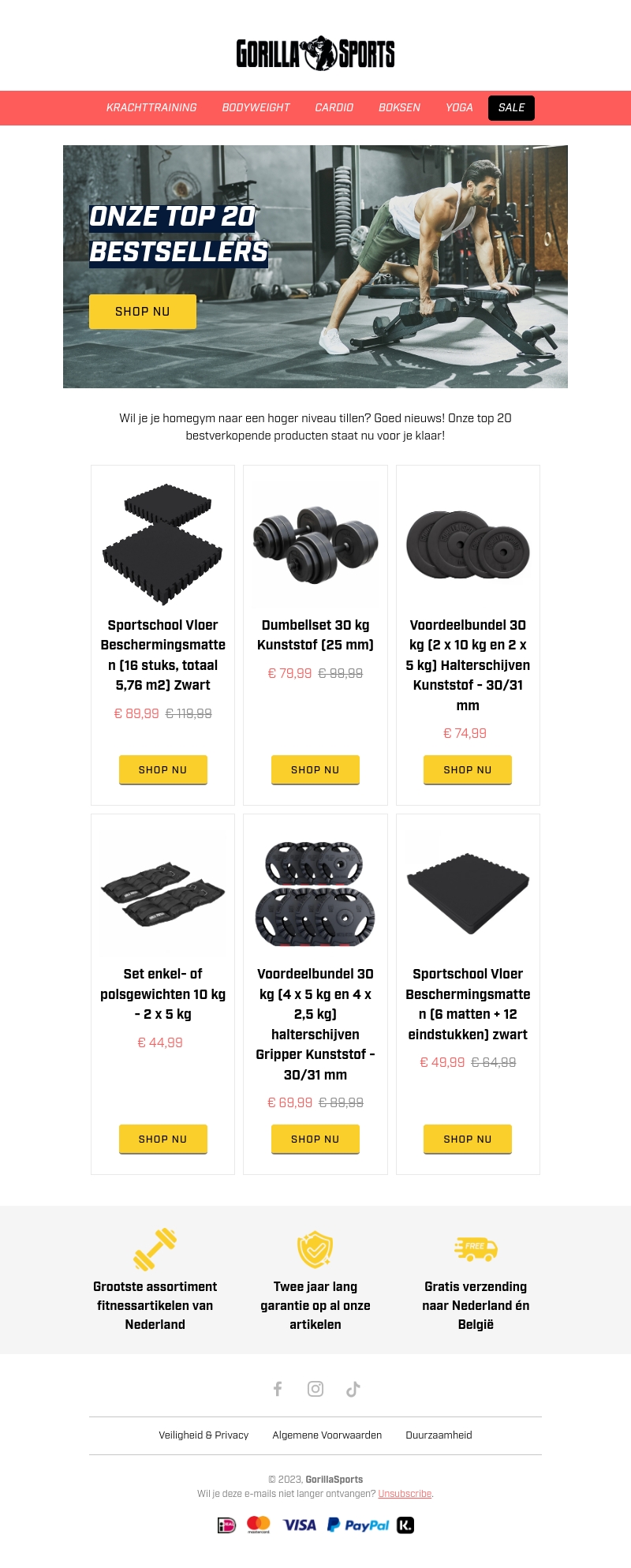 Til je homegym naar een hoger niveau met onze top 20 best verkochte producten. Van dumbbells tot beschermmatten, ontdek de beste deals. Profiteer van aanbiedingen en verbeter je trainingservaring thuis. Bekijk onze selectie en shop nu om je fitnessdoelen sneller te bereiken.