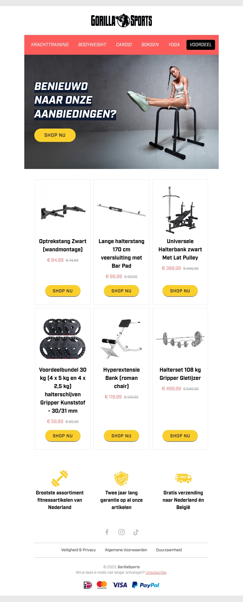 Mis de topdeals van de week bij Gorilla Sports niet! Profiteer van kortingen op 10 geselecteerde fitnessproducten, van optrekstangen tot haltersets. Haal de beste deals in huis voor je fitnessroutine.
