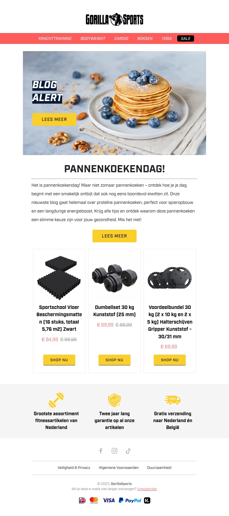 Het is Pannenkoekendag en Gorilla Sports heeft speciale eiwitrijke recepten voor jou. Begin de dag met een smakelijk en voedzaam ontbijt. Onze blog heeft alle tips om de beste pannenkoeken te maken die goed zijn voor je spieren en energie. Lees meer en ontdek deze gezonde keuzes!