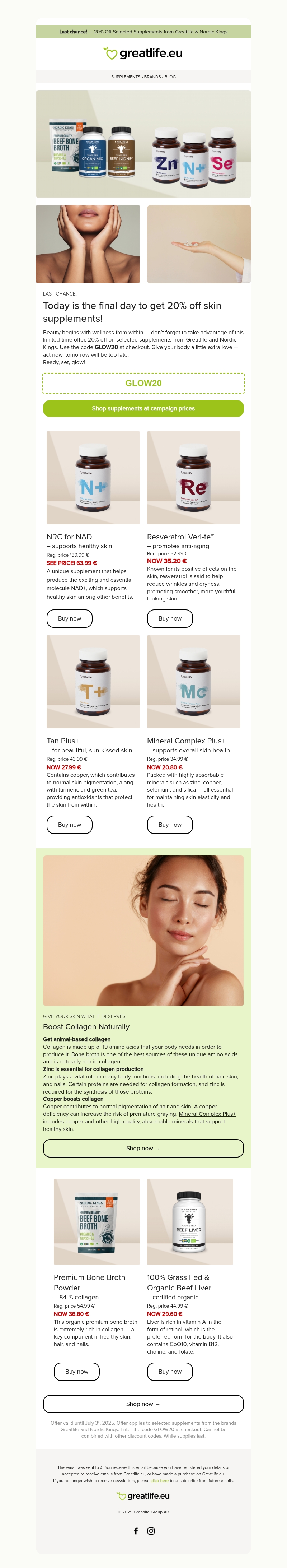 Last day for 20% off selected skin supplements β¨ | Greatlife.eu π