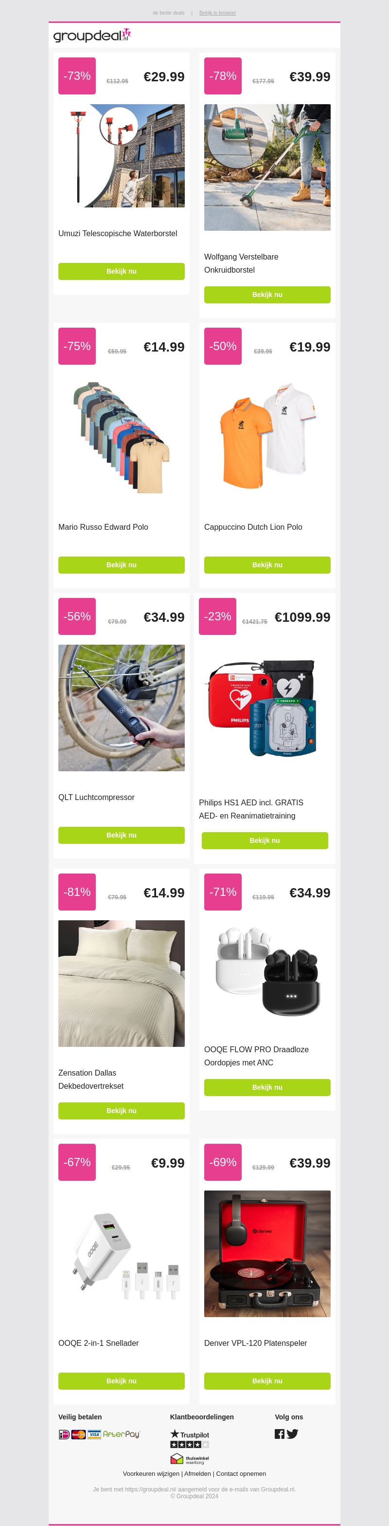 Deze week hebben we de top 10 aanbiedingen samengesteld die u niet wilt missen. Van telescopische waterborstels tot draadloze oordopjes met ANC, voor ieder wat wils. Profiteer van kortingen tot wel 81%. Bekijk nu onze aanbiedingen en bespaar!