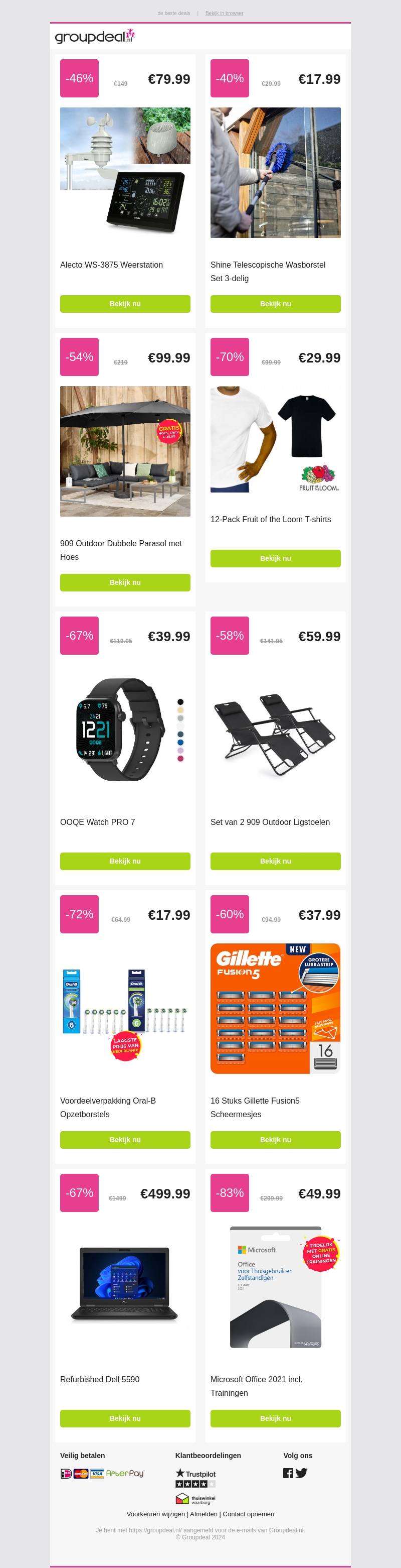 Bekijk deze week de top 10 aanbiedingen bij Groupdeal. Ontvang geweldige kortingen op producten zoals elektronica, kleding, en meer. Mis het niet, deze deals zijn snel uitverkocht. Profiteer nu en bespaar groots!