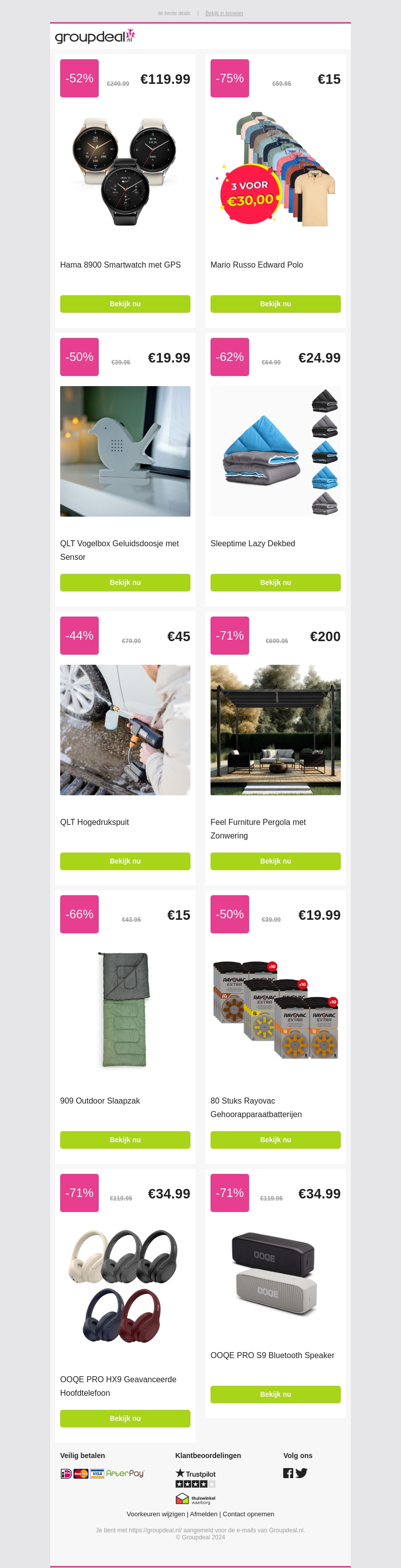 Deze week hebben we geweldige kortingen op producten zoals smartwatches, kleding, beddengoed en meer! Bespaar tot wel 75% op geselecteerde items. Mis deze kans niet om fantastische deals te scoren. Ontdek alles in onze nieuwsbrief.