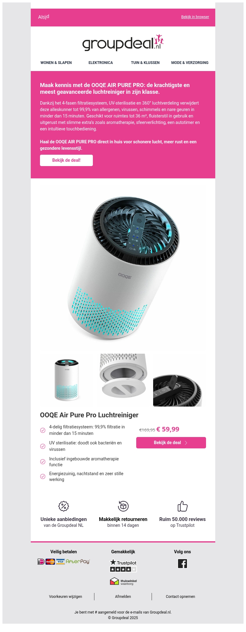 DAGDEAL: De OOQE AIR PURE PRO professionele luchtreiniger! 🌬️