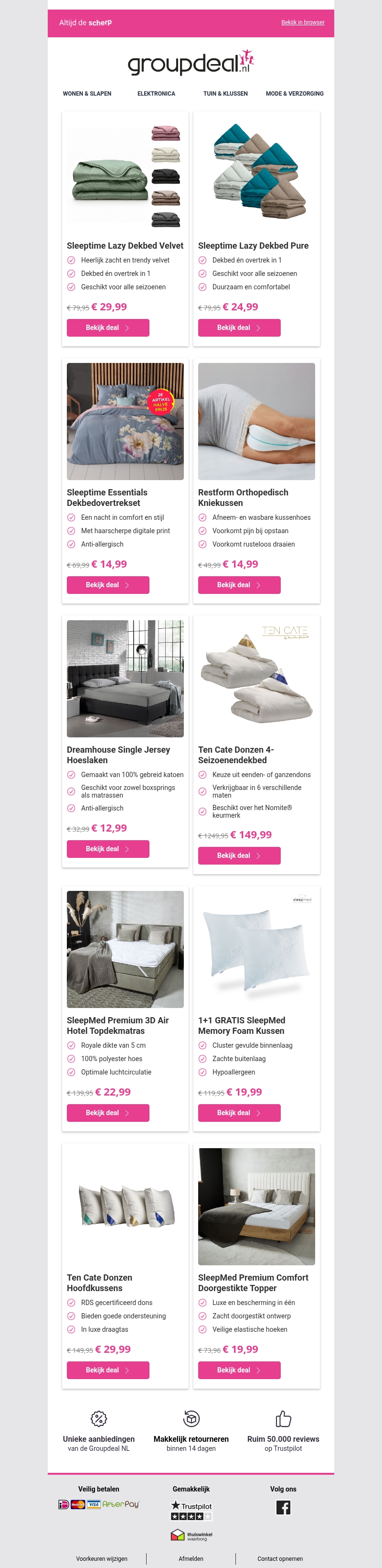 Ontdek geweldige aanbiedingen voor slaapartikelen, inclusief dekbedden en kussens, perfect voor de koude dagen. Geniet van comfort en kwaliteit met producten zoals het sleeptime lazy dekbed en het SleepMed Premium kussen. Zorg voor een goede nachtrust met duurzame en stijlvolle opties die passen bij elk seizoen.