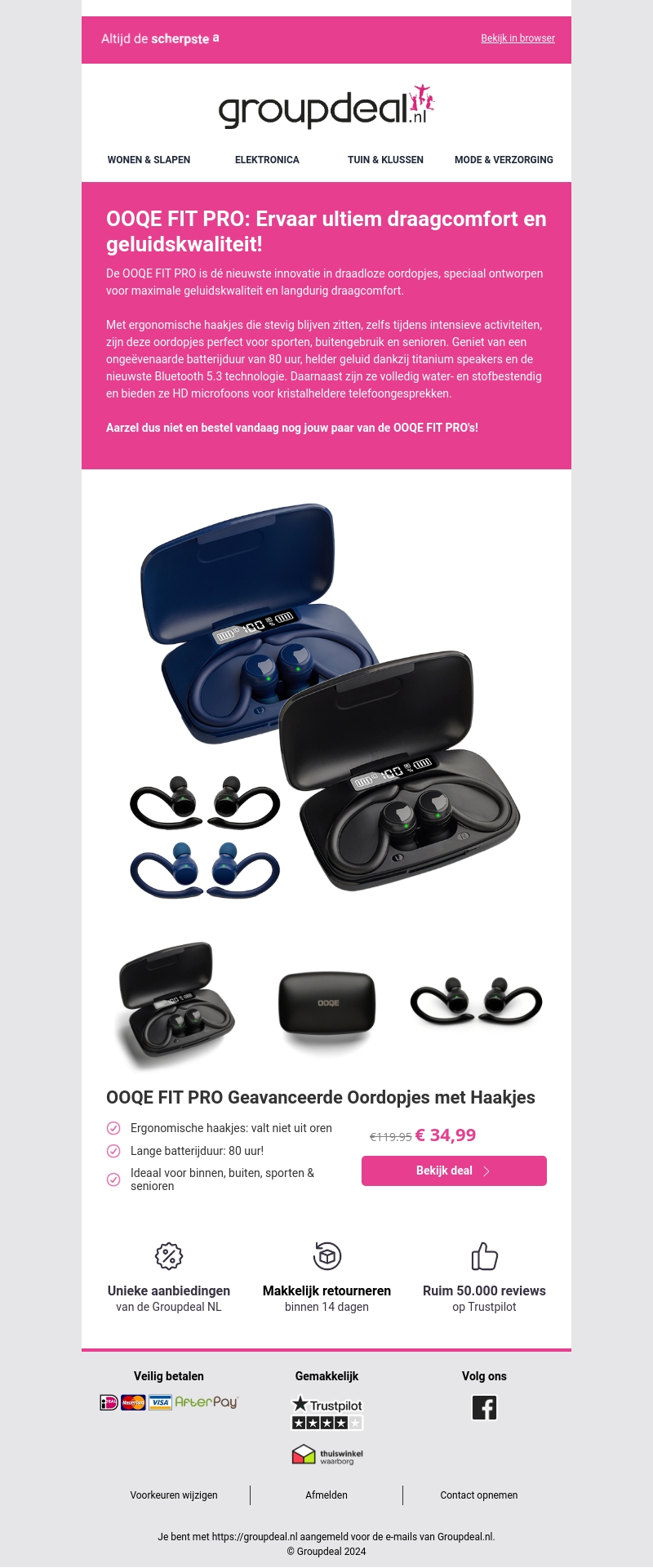 De OOQE FIT PRO is de nieuwste innovatie in draadloze oordopjes, speciaal ontworpen voor langdurig draagcomfort en uitstekende geluidskwaliteit. Met ergonomische haakjes blijven ze stevig zitten, ideaal voor intensieve activiteiten. Geniet van 80 uur batterijduur, kristalhelder geluid en waterbestendigheid.