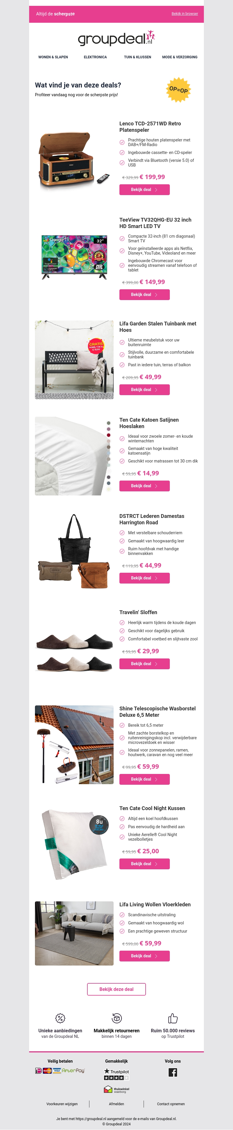 Profiteer van de nieuwste aanbiedingen bij Groupdeal.nl. Van een retro platenspeler tot een comfortabele tuinschommel en meer. Bekijk de deals snel en bespaar op je favoriete producten.
