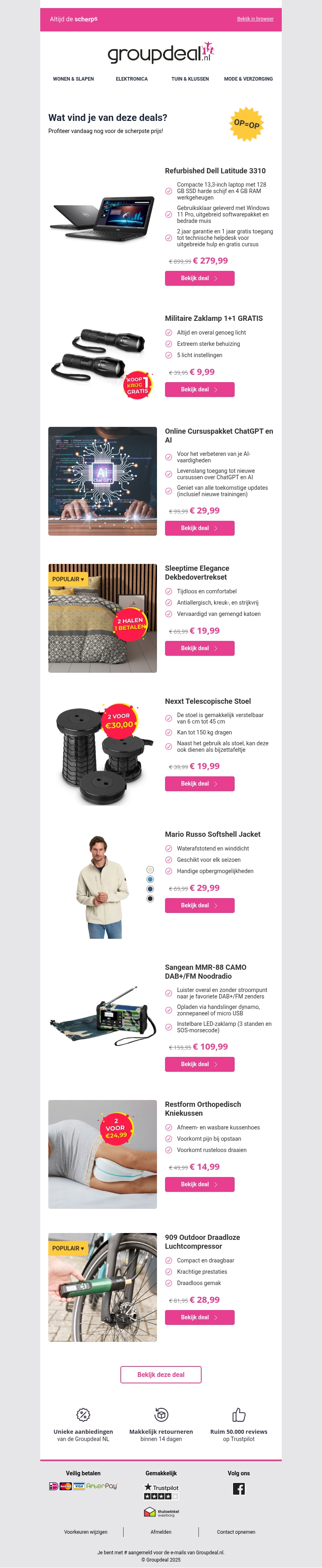 Profiteer van ongelooflijke kortingen bij Groupdeal.nl! Vind unieke deals zoals de Refurbished Dell Latitude 3310, ChatGPT & AI-cursuspakket, of exclusieve slaapaccessoires. Shop de nieuwste technologie met grote besparingen en verwen uzelf met hoogwaardige producten. Bekijk nu de aanbiedingen voordat ze verdwijnen!