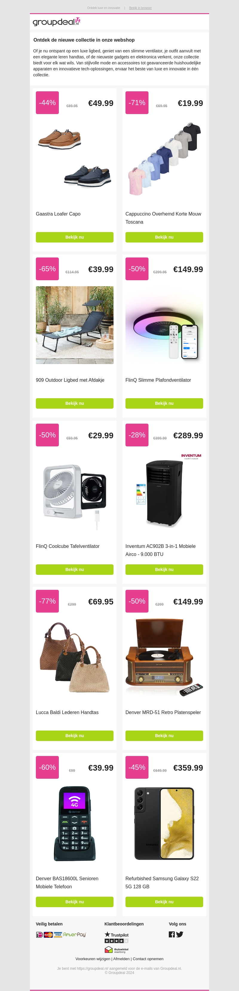 Ervaar luxe en innovatie met onze nieuwste collectie in de webshop. Van stijlvolle mode-items en accessoires tot geavanceerde huishoudelijke apparaten en tech-oplossingen. Bekijk nu de beste aanbiedingen en verrijk je leven met kwaliteit en elegantie.