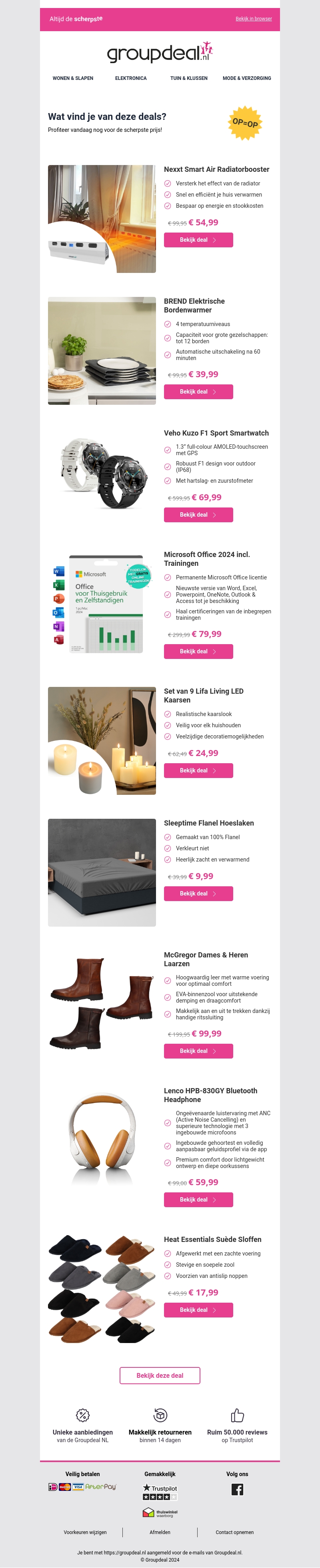 Beleef de ultieme winkelervaring met Groupdeal's spectaculaire kortingen. Van radiators aansteken tot stijlvolle LED-kaarsen, er zijn deals voor elk huis en budget. Bereid je voor op slimme technologie met de nieuwe Veho Kuzo F1 Sport Smartwatch en houd je administratie op orde met Microsoft Office 2024. Ontdek luxe beddengoed voor een perfecte nachtrust en stijlvolle schoenen voor elk avontuur. Zorg dat je deze kans niet mist!