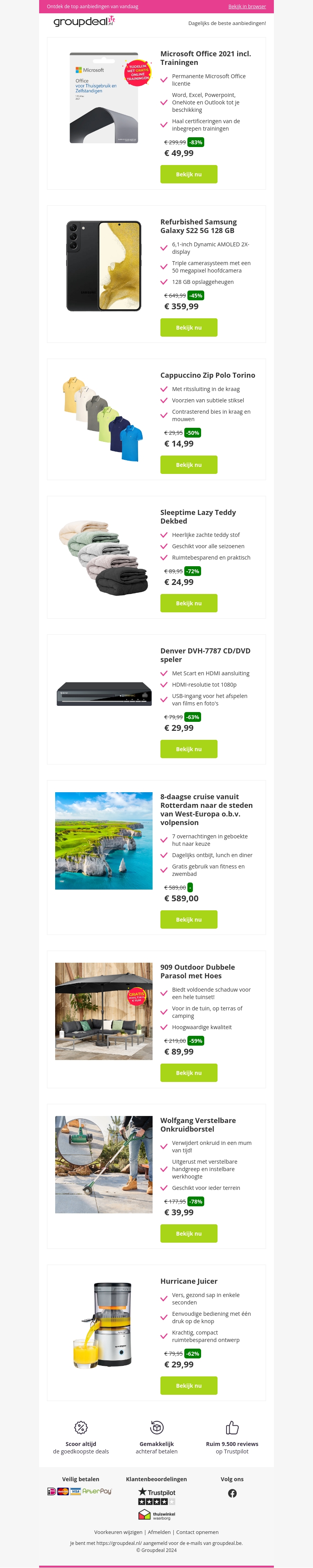 Microsoft Office 2021 incl. Trainingen vanaf 49,99 | Refurbished Samsung Galaxy S22 5G 128 GB vanaf 359,99 | Cappuccino Zip Polo Torino vanaf 14,99