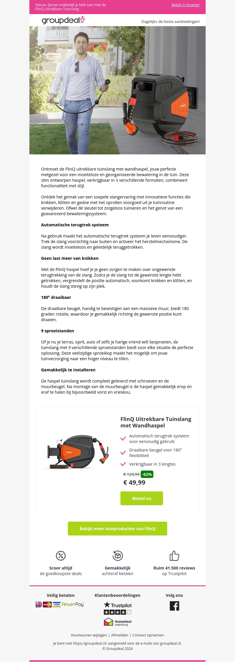 Nieuw: Sproei makkelijk je hele tuin met de FlinQ Uitrekbare Tuinslang