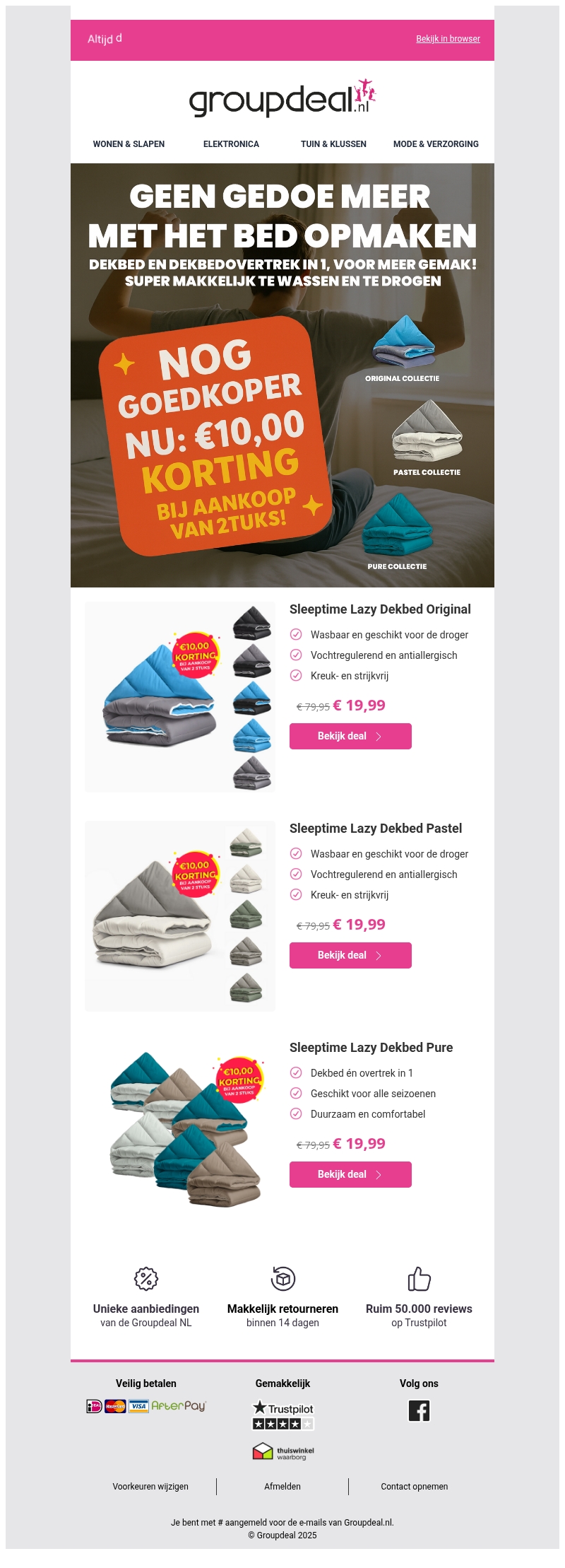 NOG GOEDKOPER: Altijd €10,00 korting bij aankoop van 2 Lazy dekbedden! 😴🛏️