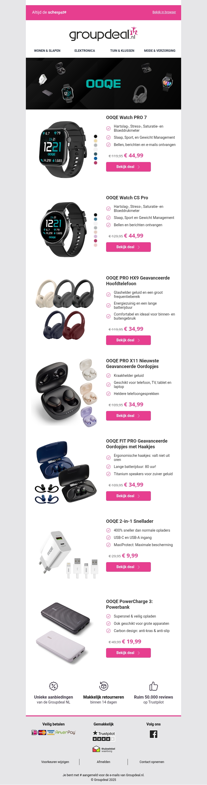 Beleef de nieuwste technologie met de Ooqe Watch PRO 7, geavanceerde hoofdtelefoons en meer! Profiteer van speciale kortingen op smartwatches, oordopjes en powerbanks. Upgrade uw tech collectie zonder de bank te breken vandaag nog!