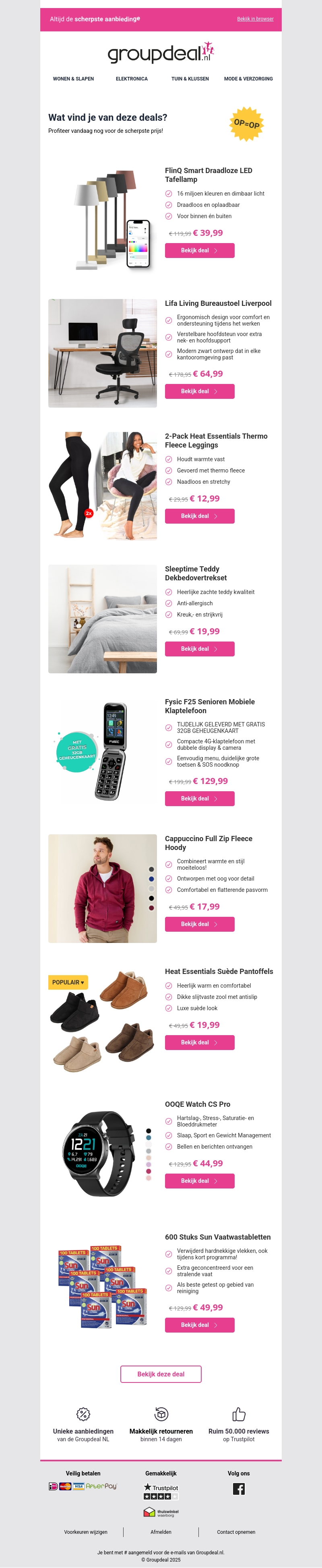 Profiteer van exclusieve kortingen op LED-lampen, bureau-accessoires en warme kleding. Deze deals zijn perfect voor het opfrissen van je huis, garderobe en meer. Van slimme tafellampen tot comfortabele leggings, mis het niet! Pak je korting voordat ze verdwijnen.