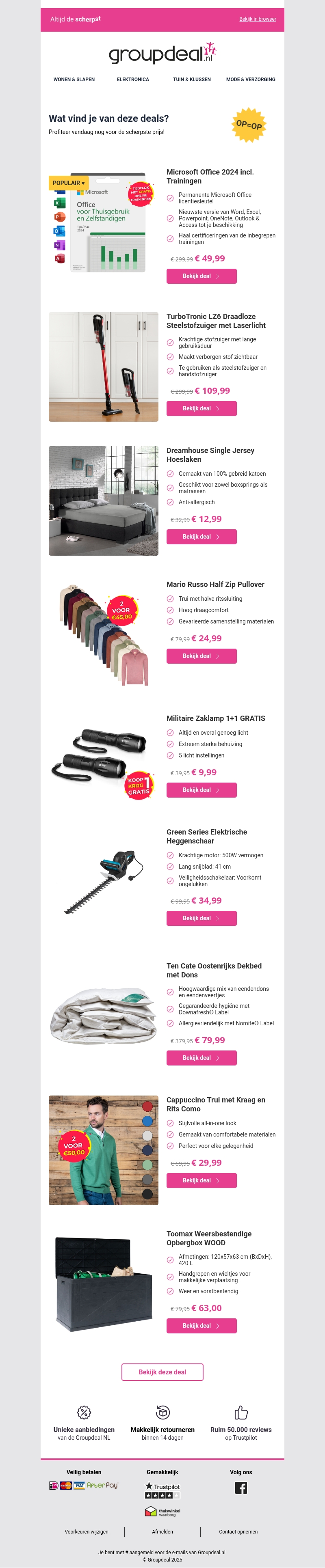 Profiteer van fantastische kortingen op must-have producten zoals Microsoft Office 2024, draadloze steelstofzuigers, en veel meer! Deze aanbiedingen zijn beperkt beschikbaar, dus sla snel je slag. Met unieke deals en een simpel retourproces is Groupdeal.nl jouw plek voor de beste koopjes.